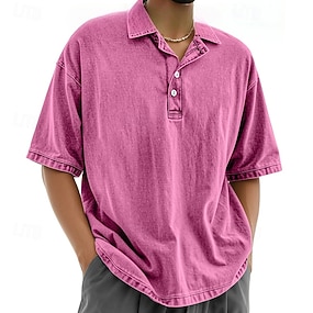 Homens Camisas Polo Camisa de golfe Casual Rua Lapela Manga Curta Básico Moderno Tecido Botões Verão Primavera Normal Preto Rosa Azul Roxo Marron Verde Camisas Polo