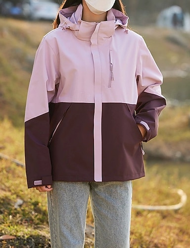 Mulheres Casaco impermeável Jaquetas de chuva impermeáveis Capas de chuva Prova-de-Água A Prova de Vento Zíper Bolsos Moda Ao ar livre Bloco de cor Para Noite Final de semana Zíper Padrão Com Capuz