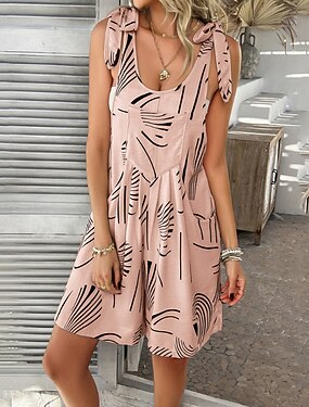 Mulheres Jardineiras Ativo Gráfico Sem Manga Imprimir Férias Rua Ajuste Largo Branco Rosa Azul Verão