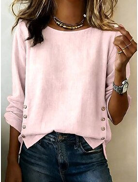 Mulheres Camisa de linho Linho de algodão sintético Botões Tecido Moda à moda Clássico Manga Curta Manga Longa Gola Redonda Tops regulares Diário Para Noite Final de semana Azul Branco Amarelo Rosa