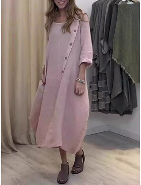 Mulheres Vestido Longo Linho de algodão sintético Moderno Diário Ao ar livre Férias Ajuste Largo Tecido Meia Manga Gola Redonda Branco Rosa Azul Claro Verão Primavera