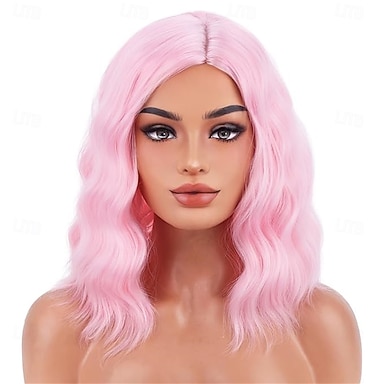peruca bob rosa com franja para mulheres perucas curtas retas rosa de 12 polegadas perucas coloridas sintéticas