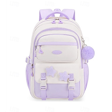 Mochila escolar de grande capacidade para meninas com alfinetes fofos, mochila leve e à prova d'água com vários compartimentos para alunos do ensino fundamental e médio, disponível em rosa e roxo