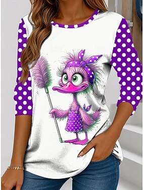 Mulheres Camiseta Imprimir Gráfico Desenho Animado Poá Vintage à moda Clássico Manga Longa Gola Redonda Tops regulares Diário Azul Vermelho Roxo Verde Primavera Outono Inverno