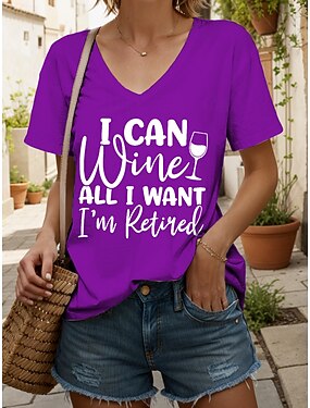 Camisa Feminina T Shirt Gráfica Aposentada Letra Vintage Estilosa Clássica Manga Curta Gola V Regular Tops Impressão Diária Preta Branca Amarela Vermelha Azul Verão
