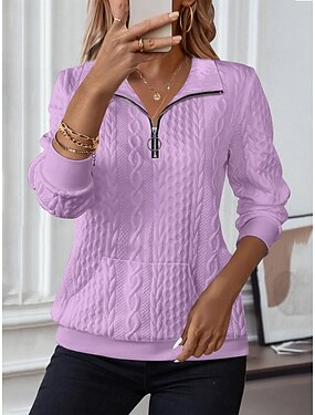 Mulheres Blusa Zíper Côr Sólida à moda Casual Estilo Praia Manga Longa Colarinho de Camisa Tops regulares Diário Azul Branco Rosa Roxo Laranja Primavera Outono Inverno