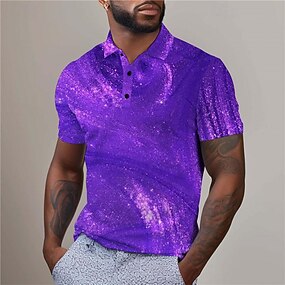 Homens Gráfico Camisas Polo Camisa de golfe Manga Curta Camisas polo Camisas de colarinho Casual Roupas de férias Desgaste Rave Trajes de festa Botões Impressão 3D Verão Primavera Roxo