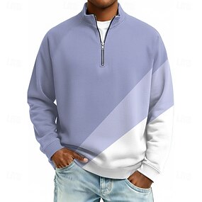 Homens Bloco de cor Camisas Polo com zíper Manga Longa Camisas polo colarinho do vovô Casual Escola Roupa Esportiva Feriado Roupa Diária Impressão 3D Polo com fecho de correr de um quarto Outono