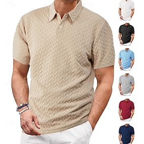 Homens Camisas Polo Waffle Textura Casual Rua Lapela Manga Curta Básico Moderno Tecido Botões Resfriamento Verão Primavera Preto Branco Azul Marinha cáqui Verde Tropa Camisas Polo Waffle