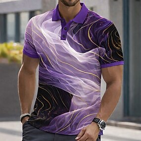 Homens Abstrato Mármore Camisas Polo Manga Curta Camisas polo Camisas de colarinho Casual Roupa Esportiva Botões Primavera Verão Azul Roxo Verde