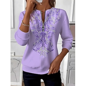 Mulheres Moletom Moletons com zíper Floral Gráfico Estampado Cashemere Moda Casual Manga Longa Gola Redonda Tops regulares Rua Dia a Dia Casual Zíper Imprimir Amarelo Rosa Roxo Claro Azul Claro