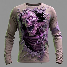 Homens Zumbis 3D Camiseta Manga Longa Camiseta Impressão 3D Gola Redonda Camisa Moda Exagerado Rua Casual Diário Azul Roxo Verde Verão Primavera Outono Roupa S M L XL XXL XXXL