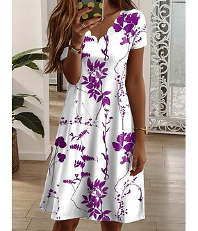 Mulheres Minivestido Vestidos Para o Verão Vestido T shirt Vestido A Line Férias Casual Estilo Praia Praia Para Noite Normal Floral Gráfico Manga Curta Decote V Azul Amarelo Rosa Roxo Verão