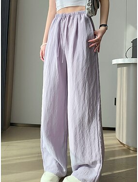 Mulheres Linho de algodão sintético Calças Calça verão Calças largas Férias Básico Casual Comprimento total Cintura Alta Tecido Com Cordão Bolsos Cintura elástica Conforto Macio Respirável Com Stretch