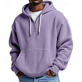 Homens Moletom Moletons Waffle Quarter Zipper Hoodie Adamascado Branco Verde Claro Verde Tropa Vermelho Com Capuz Tecido bolso canguru Textura Desportos e Ar livre Casual Diário Roupa de rua Legal