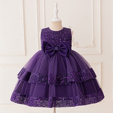 Infantil Para Meninas Vestido de festa Côr Sólida Sem Manga Ocasião Especial Aniversário Princesa Doce Poliéster Assimétrico Vestido de festa Verão Primavera Crianças Roxo
