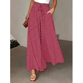 calças femininas moda casual maxi calças de cintura alta bolso de bolinhas estampa microelástica rua diário preto amarelo vermelho cinza verão poliéster