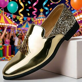 Sapatilhas Slip-On Douradas com Glitter de Mardi Gras Masculinas – Sapatos Formais Brilhantes para Ocasiões Especiais Festas e Celebrações de Carnaval