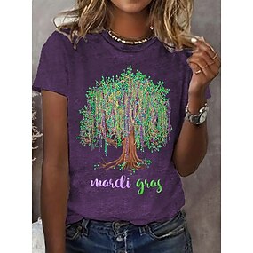 Carnaval Mulheres Camiseta Gráfico à moda Casual Manga Curta Pescoço Assimétrico Tops regulares Diário Esportes Final de semana Amarelo Roxo Verão Primavera