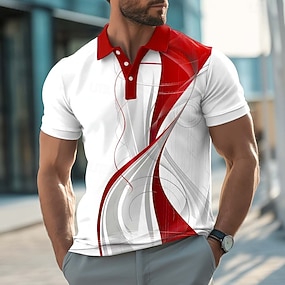 Homens Geométrica Gradiente Pólo Manga Curta Camisas polo Camisas de colarinho Casual Ao ar livre Rua Roupa Diária Impressão 3D Verão Vermelho