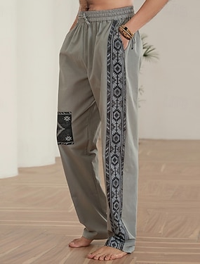 Homens Étnico Calças Calça casual Calça verão Cintura Média Estilo Étnico Retro Vintage Casual Diário Feriado Com Cordão Cintura elástica Impressão 3D Primavera Verão Impressão 3D Cáqui Cinzento