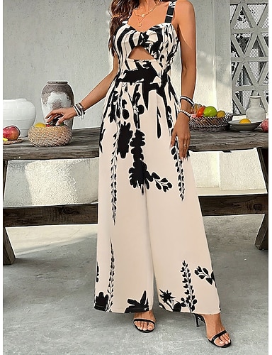 Mulheres Normal Macacão Ativo Floral Sem Manga Perna larga Decote Quadrado Imprimir Frente Única Diário Férias Normal Damasco Verão