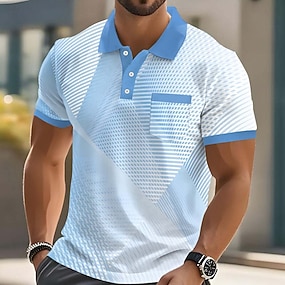 Homens Polos de botões Rua Casual Lapela Manga Curta Moda Moderno Geométrico Linha Botões Bolsos Verão Azul Roxo Verde Cinzento Polos de botões
