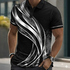 Homens Geométrica Linha Camisas Polo com zíper Manga Curta Camisas polo Camisas de colarinho Business casual Ao ar livre Roupa Esportiva Impressão 3D Verão Preto