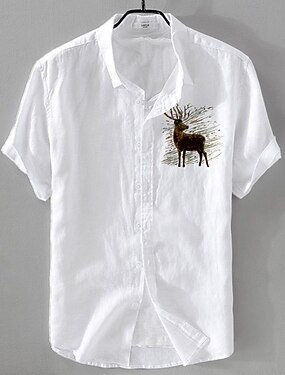 Homens Camisa de linho Camisa casual Camisa de algodão e linho camisa de botão Animal Modelado Férias Roupa Diária Branco Azul Marinho Escuro Azul Céu cáqui Manga Curta Lapela Todas as Estações Roupa