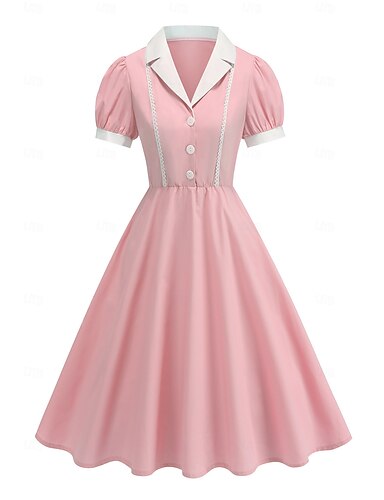 Anos 50 Hepburn Retro Vintage Meio-dia Vestido de uma linha Vestido swing Vestido florido Mangas curtas Linha A Fantasia Mulheres Carnaval Dia dos namorados Baile de Máscaras Férias Dia a Dia Festa