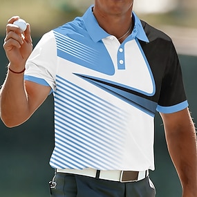 Homens Geométrico Golf Camisas Polo Esportivas Manga Curta Camisas polo Camisas de colarinho Casual Roupa Esportiva Botões Verão Primavera Azul Branco Roxo