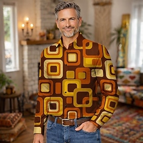 Retro Vintage Anos 70 Camisa Discoteca Geométrico Psicodélico Fantasia Homens Dia Das Bruxas Carnaval Festival de Música Parada do Orgulho Adulto Camisa