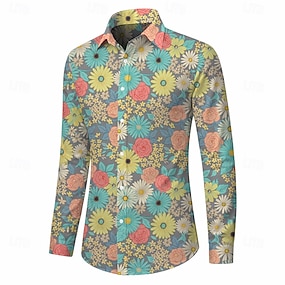 Retro Vintage Anos 70 Camisa Camisa Aloha Manga Comprida Hippie Floral Fantasia Homens Baile de Máscaras Festival de Música Festa Roupa Diária Adulto Camisa