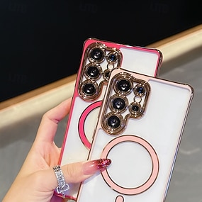 telefone Capinha Para S25 S24 S24 FE S23 Ultra Plus Capa traseira Magnética Suporte para carregamento sem fio Bling Glitter Brilhante Retro TPU Galvanização PC