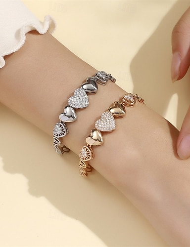 Zircônia Cubica Clássico Geométrico Coração Doce Elegante Personalizada Simples Na moda cromada Pulseira de jóias Prata / Dourado Para Casamento Festa Noivado Baile de Formatura
