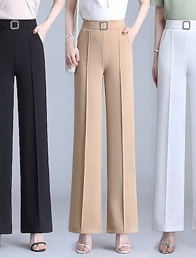 Mulheres Social Perna larga Calças Moda Roupa de rua Comprimento total Cintura Alta Tecido Respirabilidade Confortável Rua Roupa Diária Para Noite Preto Branco Amarelo Rosa claro Primavera Outono