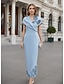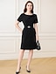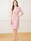 Tubinho Até os Joelhos Vestido Coquetel Manga Curta Manga Longa Gola Redonda Decote Canoa Elegante Vintage Festa Tapioca Poliéster Vestido Para Mãe dos Noivos com Laço(s)