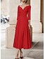 Tubinho Vestidos Longuette Vestido de festa Vestido Coquetel Manga Longa Decote V Elegante Vintage Simples Formal Convidado do casamento Tapioca Vestido Para Mãe dos Noivos com Laço(s) Pregas Cor
