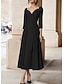 Linha A Até o Tornozelo Longuette Vestido de festa Vestido Coquetel Manga 3/4 Ombro a Ombro Elegante Simples Vestido preto Tapioca Tecido Que Estica Vestido Para Mãe dos Noivos com Pregas