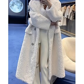 Mulheres Casaco de inverno Casaco Casaco de pele falsa Manter Quente Confortável Bolsos Botões Moda Tecido Férias Para Noite Final de semana Longo Lapela Ajuste Largo Manga Longa agasalhos Bege