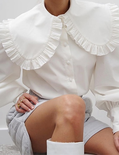 Mulheres Camisa Social Botões Tecido Diário à moda Básico Manga Longa Bispo Colarinho de Camisa Tops regulares Diário Trabalho Feriado Branco Primavera Outono