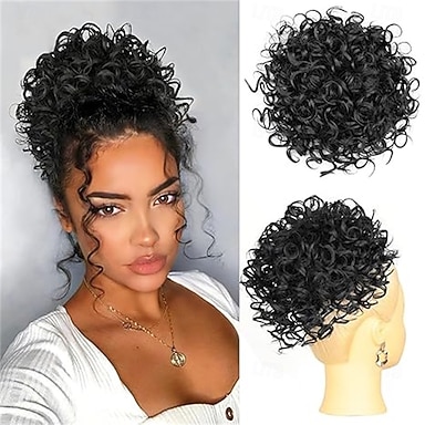 Aplique de cabelo coque desarrumado para mulheres, aplique de cabelo coque cacheado de 25 cm com ondas soltas, extensão de cabelo sintético, rabo de cavalo com cordão elástico, coque falso para uso