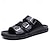 Sandálias masculinas bege com três fivelas, modelo slide, abertas na frente, casuais, ajustáveis e confortáveis para o verão, ideais para férias na praia, resorts, viagens, uso doméstico, lazer ao ar livre e para o dia a dia em climas quentes.