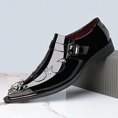 Sapatos sociais masculinos pretos de verniz sintético com tachas – calçado formal arrojado para festas, formaturas e eventos sofisticados.