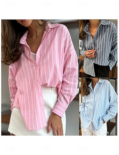 Mulheres camisa de verão Camisa casual Botões Imprimir Gráfico Geométrica Listrado Férias Vintage Tropical Manga Longa Aberto para a Lateral Colarinho de Camisa Tops regulares Diário Trabalho Feriado