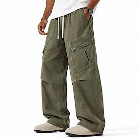 Homens Calças Cargo Calça casual 100% Algodão Calças com lavagem ácida Com Cordão Cintura elástica Perna larga Tecido Conforto Respirável Comprimento total Casual Diário Ao ar livre Moda Retro Vintage