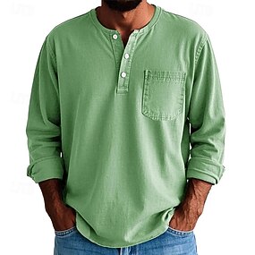 Homens Camisa Waffle Camiseta Camisa Henley Camisetas Manga Longa Henley Primavera Outono Tecido Moda Designer Básico Botões Férias Rua Para Noite Preto Branco Verde Top Tee para Homens
