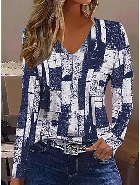 Camiseta Feminina T-Shirt V Decote Longo Tunic Gráfico Geométrico Vintage Estilosa Clássica Comum Tops Impressão Diária saindo de Fim de Semana Preto Azul Primavera Outono