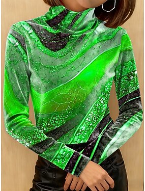 Mulheres Camisetas Imprimir Em Camadas Côr Sólida Gráfico Elegante Vintage Moda Manga Longa Gola Alta Tops regulares Diário Para Noite Final de semana Vinho Azul Real Dourado Verde Outono Inverno