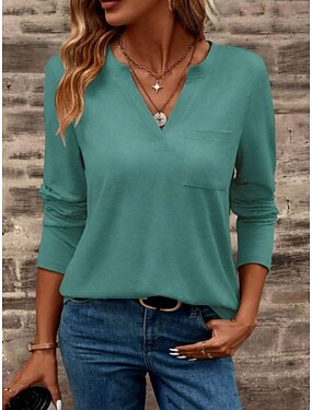 Natal Mulheres Blusa Côr Sólida Elegante à moda Básico Manga Longa Decote V Tops regulares Diário Feriado Azul Vinho Roxo Verde Primavera Outono Inverno